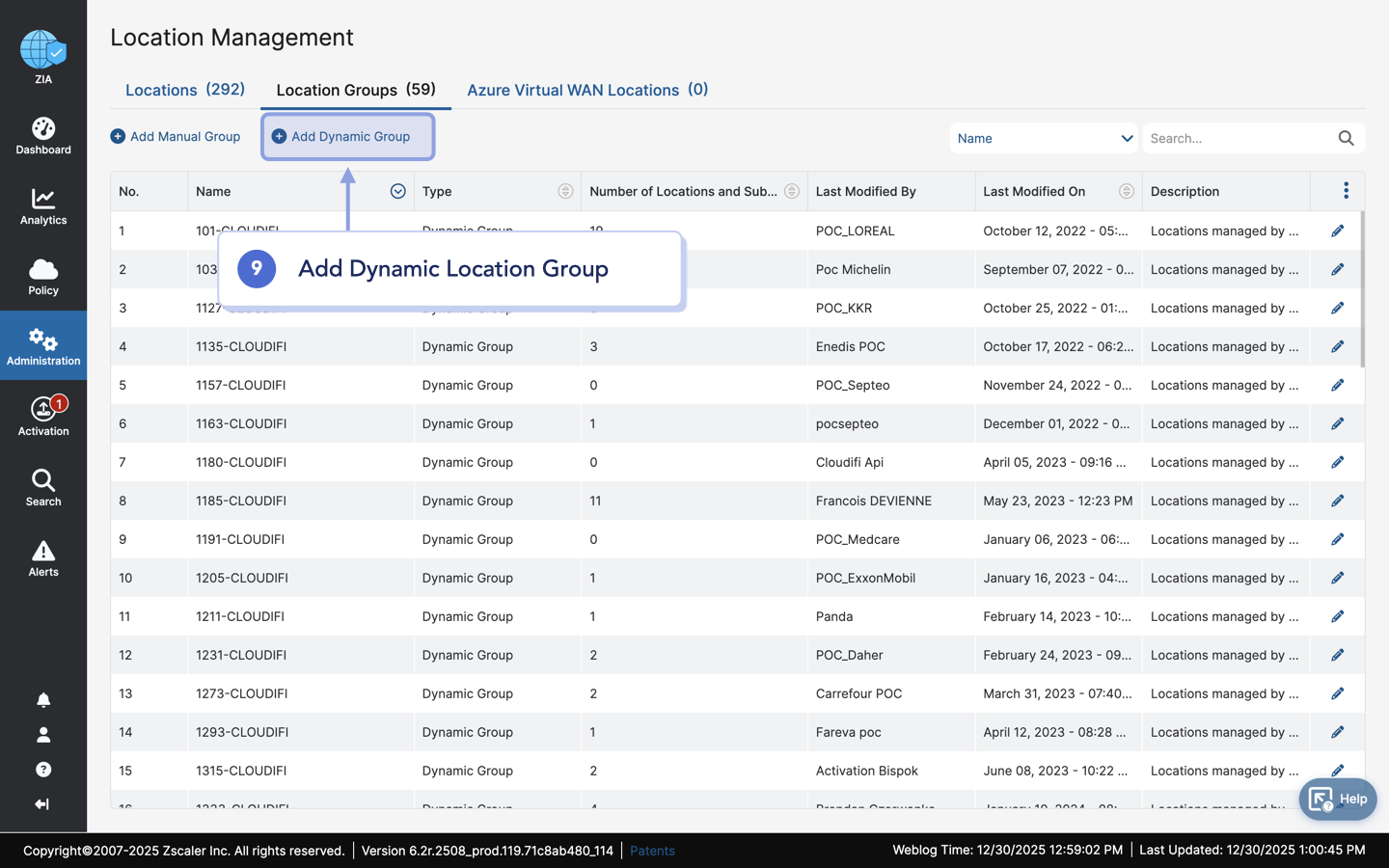 Click "Location Groups" tab at the top of the location management list, then click "Add Dynamic Group"