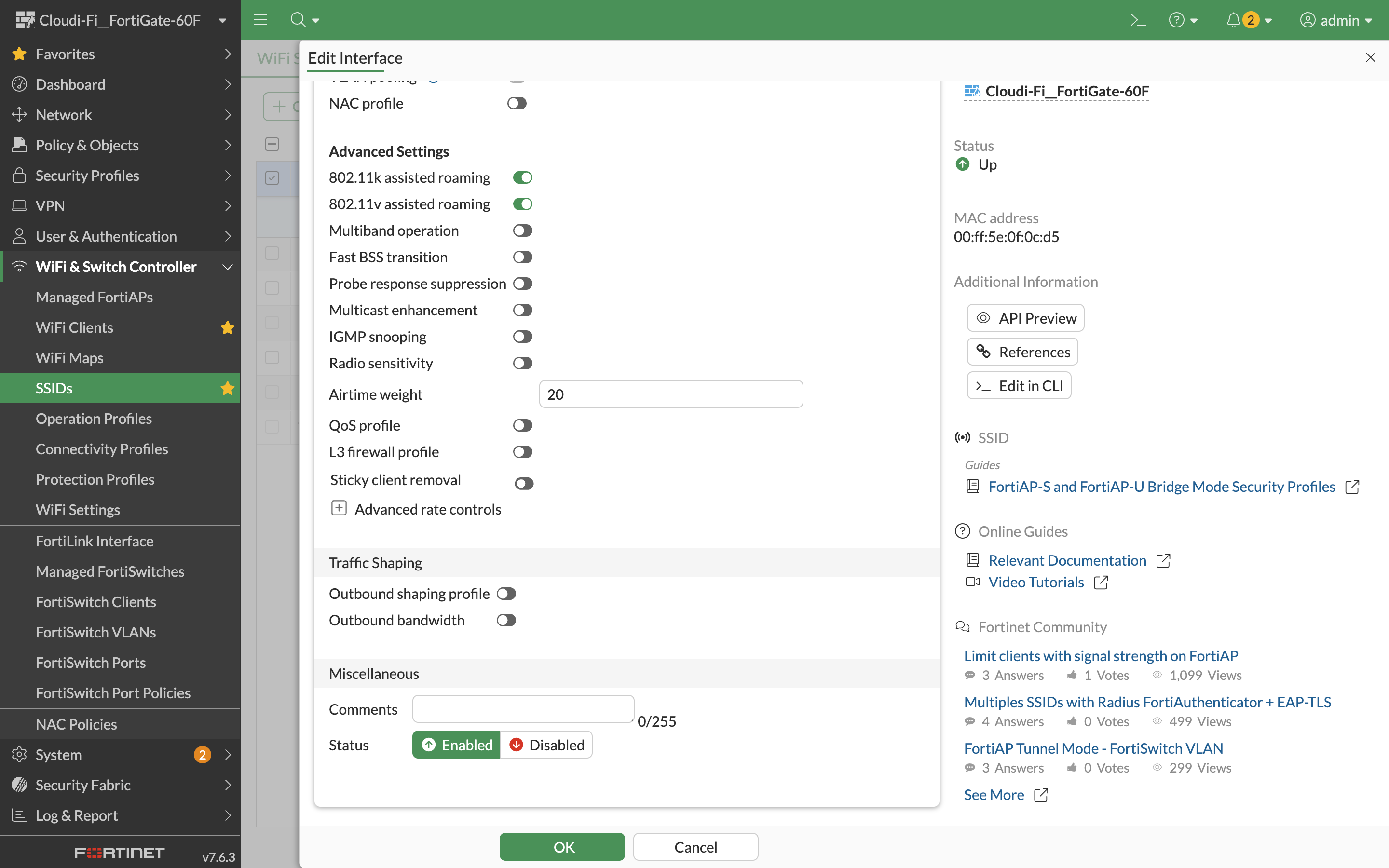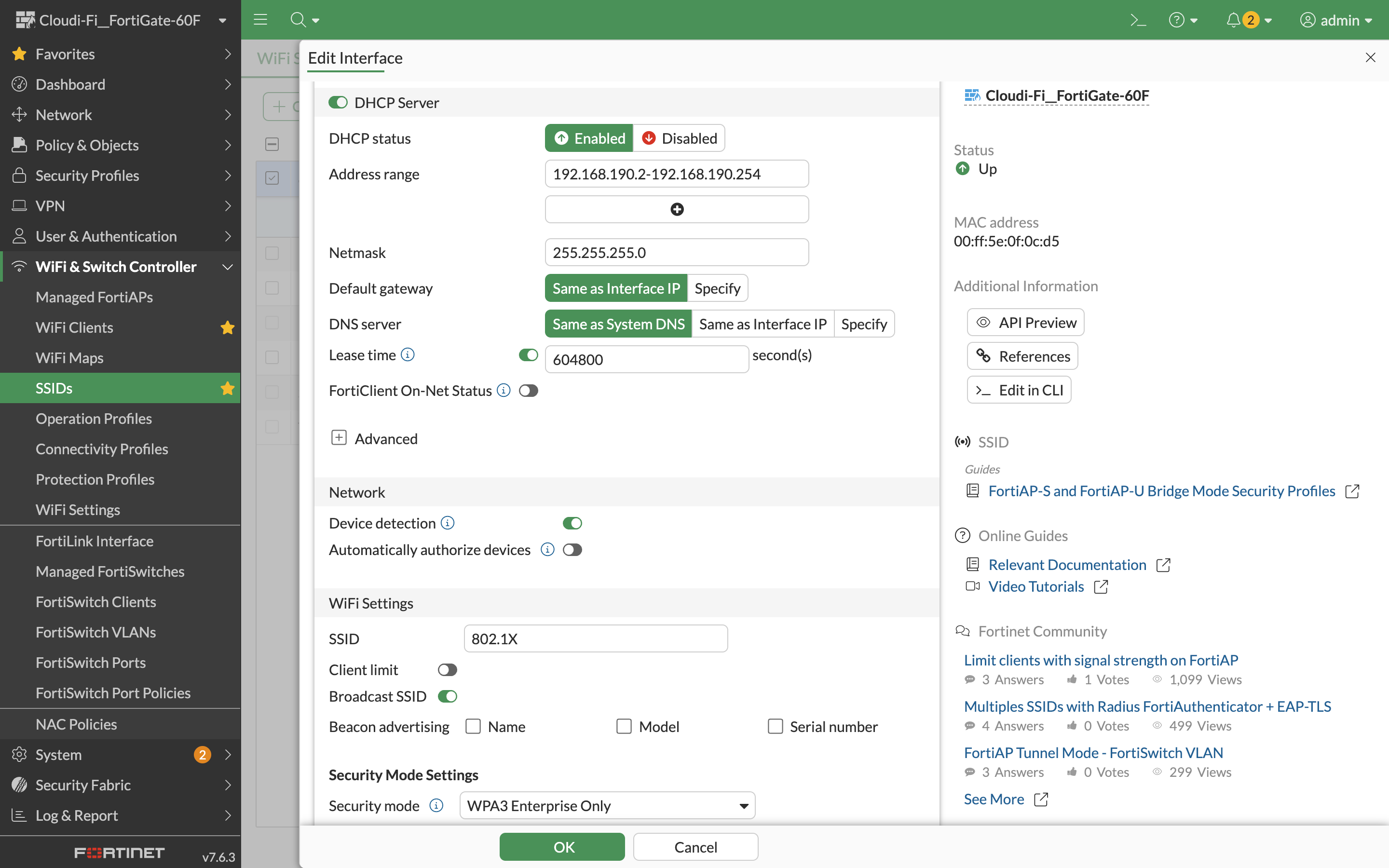 3. Enable the Captive portal in FortiGate WiFi controller