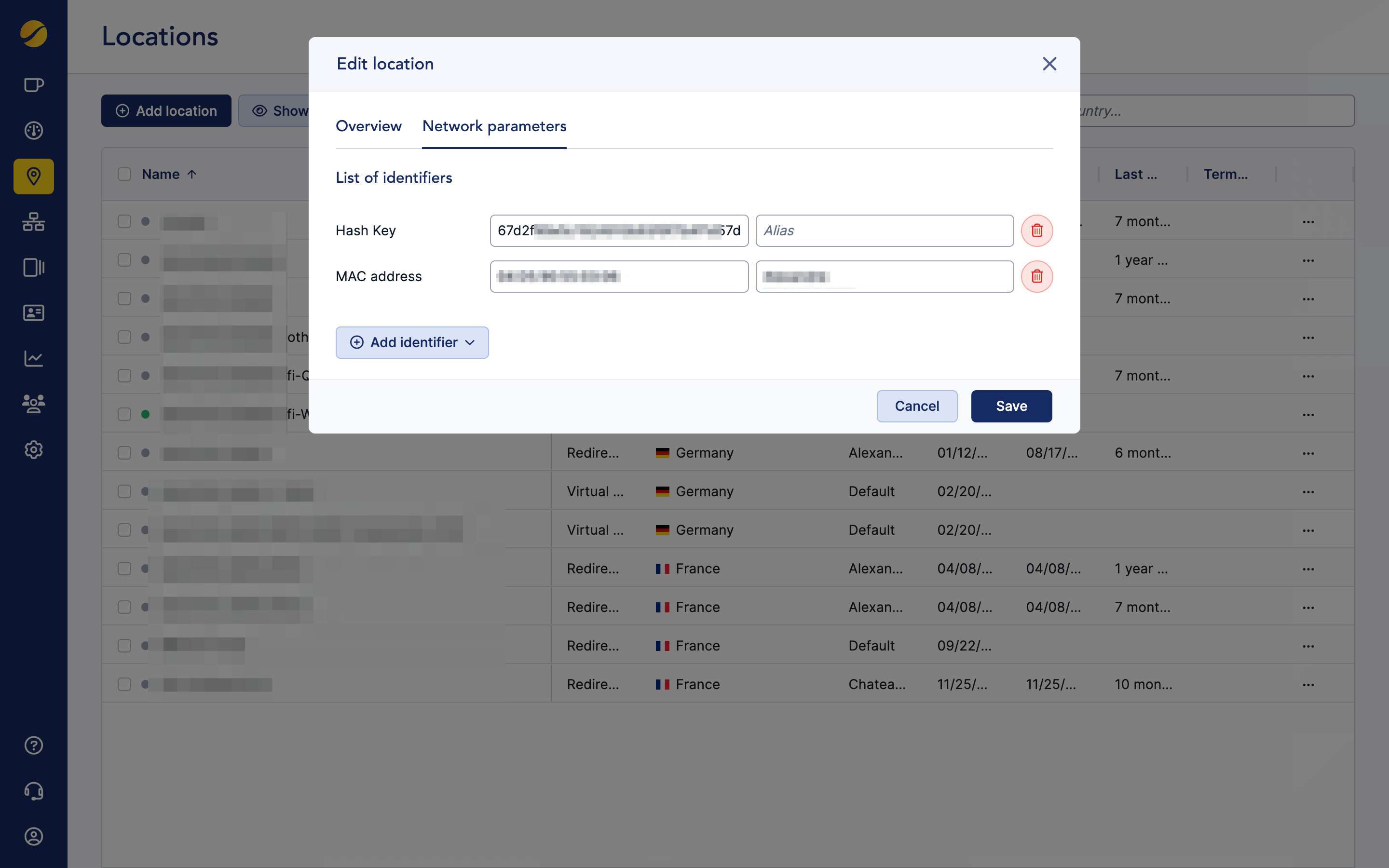 Then retrieve the location hash key, which will be used as the NAS ID. In the Admin UI, go to Location, select the desired location, and copy the hash key under Identifier.