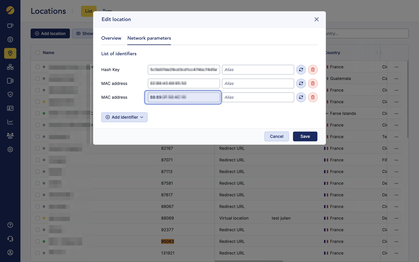 This NAS_ID must be added under Cloudi-Fi > Locations, in the identifiers as a MAC address.