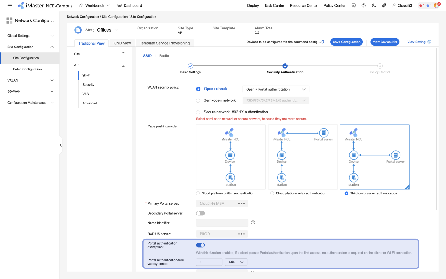 - Ensure you have deployed Cloudi-Fi captive portal using the following documentation (How to integrate Huawei iMaster NCE-Campus in Third-Party Portal Server mode)