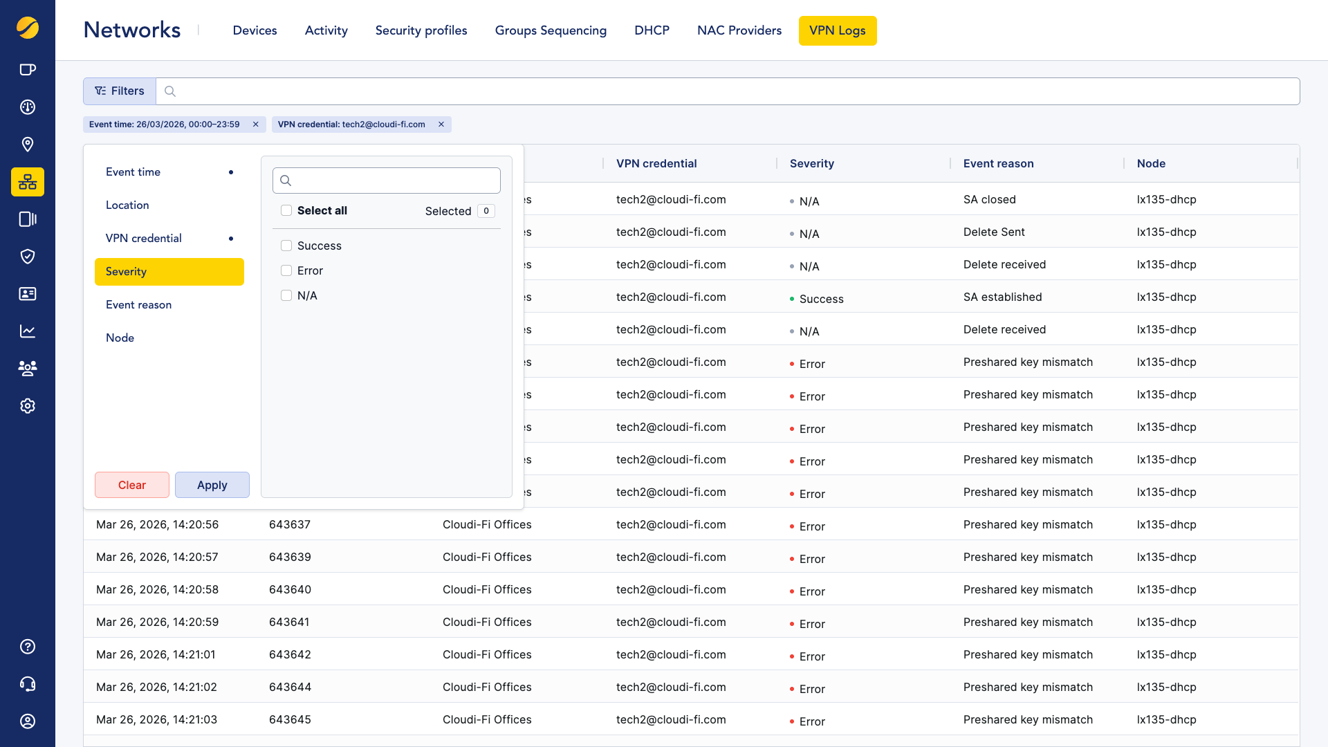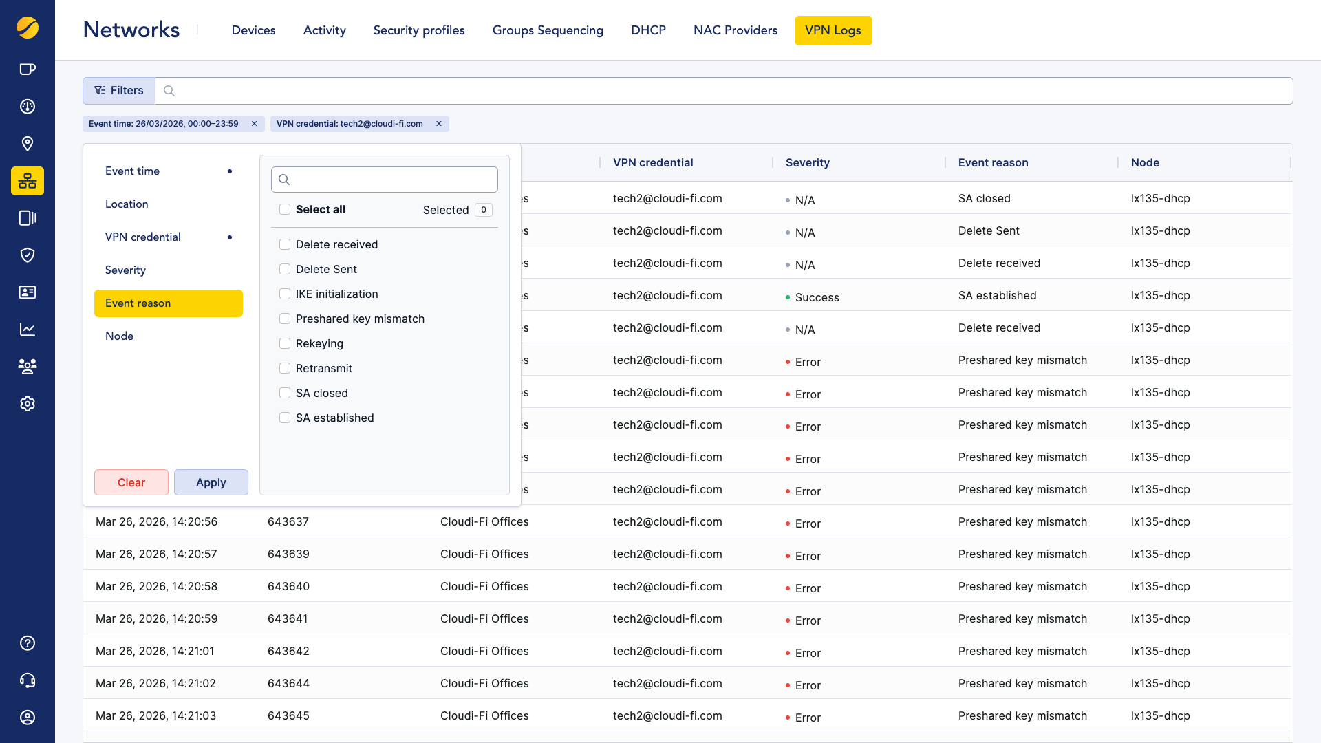 VPN IPSec logs for DHCP Tunnels