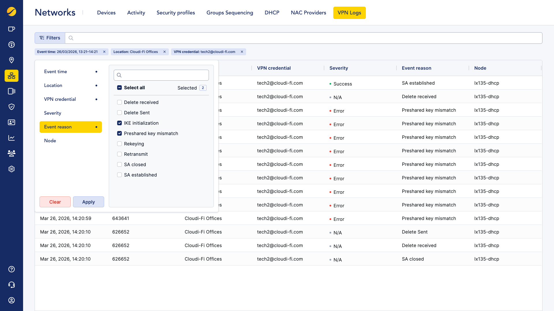 VPN IPSec logs for DHCP tunnels